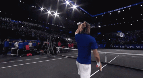 Stefanos Tsitsipas waves to the cheering crowd after a match at the Laver Cup.