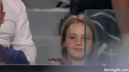 A young girl enthusiastically cheers and claps for Stefanos Tsitsipas during a tennis match.
