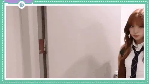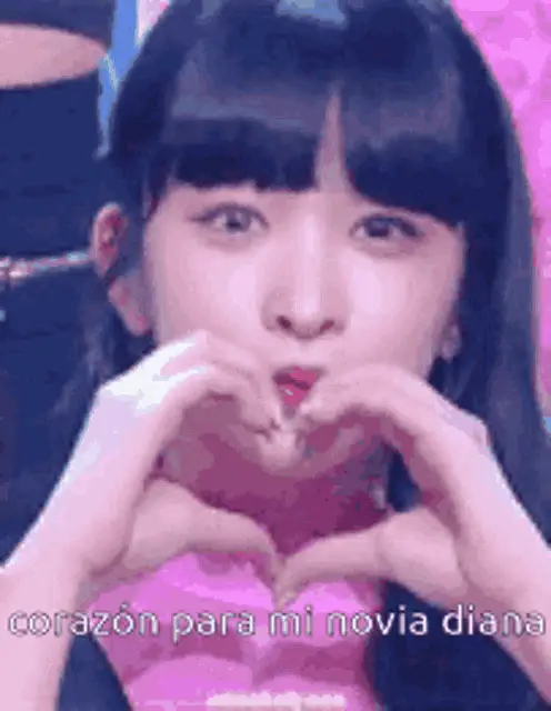 Tsuki from Billlie smiles sweetly, holding her hands together, with a Kuromi heart-eyes graphic.