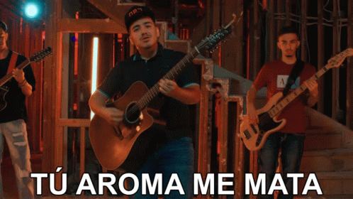 Eslabon Armado performs their song 'Tu Aroma Me Mata' with a guitarist and bassist on stage.