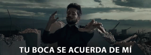 Camilo performs 'Tu Boca Se Acuerda De Mi' in a dramatic music video setting with a destroyed building backdrop.