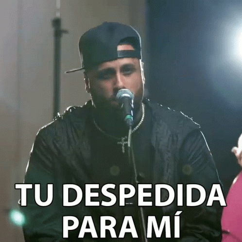 Nicky Jam performs 'Tu Despedida Para Mi Fue Dura', singing passionately into a microphone with lyrics on screen.