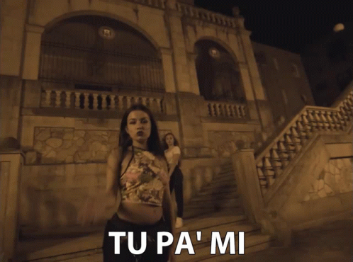 Shainny performs 'Tu Pa Mi' at night, standing in front of an old building.