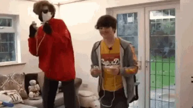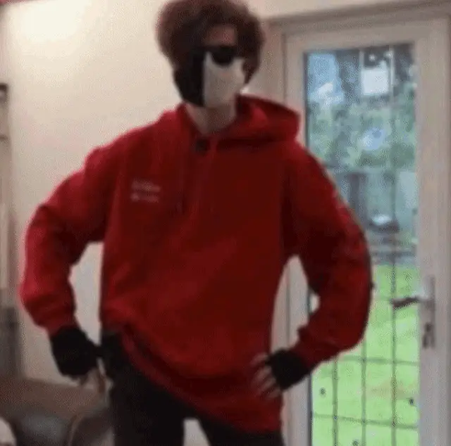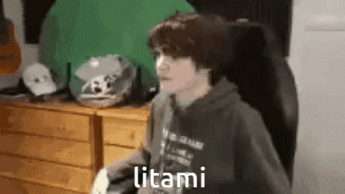 Tubbo sits in a chair in front of a green screen with the word "litami" displayed, reacting to something off-screen.