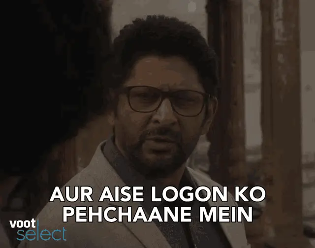 Arshad, wearing a Winnie the Pooh shirt, is interviewed, with the caption 'Tujhe Puchneki Zaroorath Na Hai'.