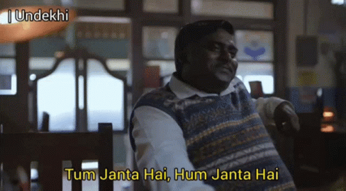 A man in a sweater delivers the iconic dialogue 'Tum Janta Hai, Hum Janta Hai' from Undekhi S2.