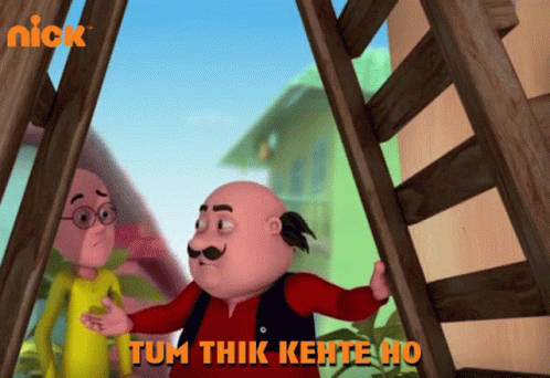 Motu and Patlu from the popular Indian animated series, with the Hindi phrase 'Tum Thik Kehte Ho' (You Are Right).