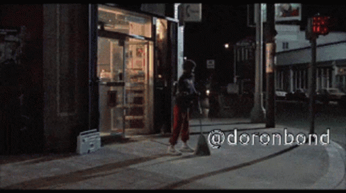 A man performs impressive breakdancing moves while sweeping the sidewalk with a broom at night, showcasing his 'Turbo Broom' skills.