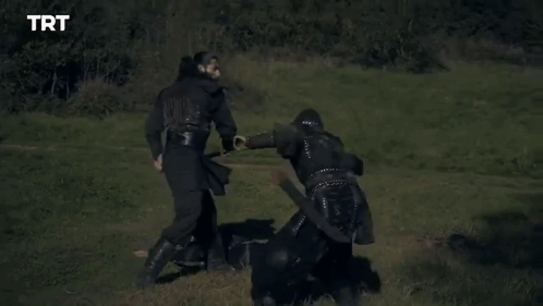 two men fighting in a field with trt written on the bottom