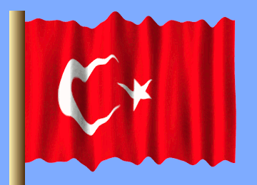 The national flag of Türkiye (Turkey) waving proudly, featuring its iconic red background with a white crescent moon and star.