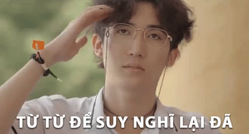 Minh Hoàng, a young man, thoughtfully salutes while a Vietnamese caption reads 'Slowly to think again'.