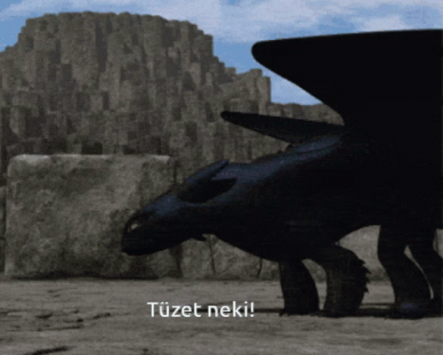 Toothless from How To Train Your Dragon in a ready stance, with the Hungarian caption "Tüzet neki!" (Fire!).