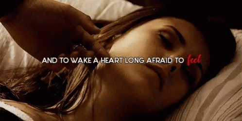 Damon Salvatore gently touches Elena Gilbert's face as she lies in bed, an emotional moment from The Vampire Diaries.