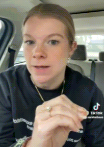 Woman in a car making a funny, 'tweaking' facial expression with an open mouth, creating a meme-like moment.