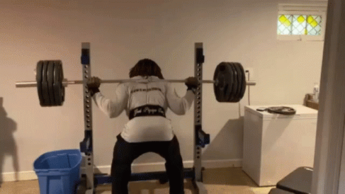 Tweez performs a heavy 405 lbs squat in a home gym, showcasing impressive strength during a leg day workout.