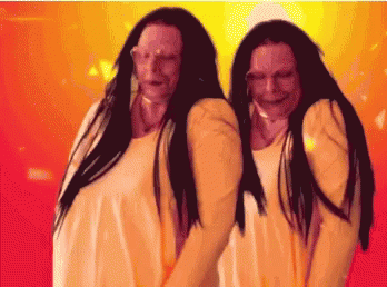 Anna, Cherylyn, and Lucy De Cinque perform a synchronized twin dance against a vibrant background.