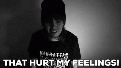 Twizzfizz from Twizzverse reacts emotionally with the caption 'THAT HURT MY FEELINGS!' in a black and white clip.