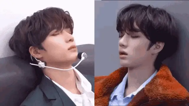 Txt Tomorrow X Together members sitting and playing with shadow puppets on sticks.