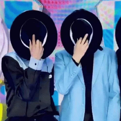 Yeonjun and Huening Kai of TXT reveal their faces and make heart poses for the camera.