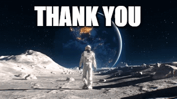 An astronaut walks on the moon with Earth in the background, displaying a 'Thank You' message.
