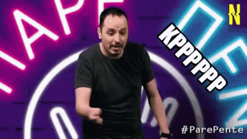 Tzouvelas Tsouvelas dances on the set of Pare Pente, featuring neon signs and 'KPPPPPPP' text.