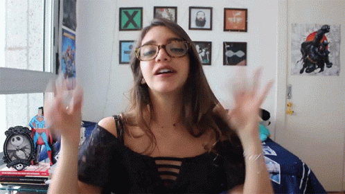 Debora Aladim, wearing glasses, makes an expressive gesture while discussing study tips.