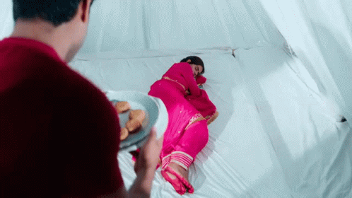 Udaariyaan Fatejo: Priyankit brings breakfast in bed to a sleeping woman in a pink outfit.