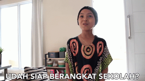 Keira Charma asks if she's ready to go to school, standing in front of a window.