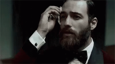 A bearded man in a tuxedo wipes his brow, expressing relief, with 'UFA' text on screen.