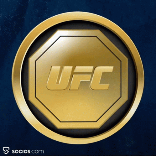 A gleaming gold UFC Fan Token, featuring the iconic logo, rotates against a dark blue background.