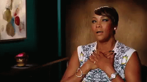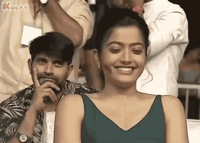 Woman reacts with an 'Uff' expression, hands on chest in exasperation or surprise.