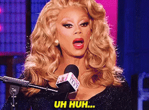 RuPaul, also known as Mama Ru, speaking into a microphone and saying 'Uh Huh' with a nod.