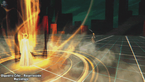 Ulquiorra Cifer unleashes his Resurrección Murciélago form, transforming with green energy and bat wings.