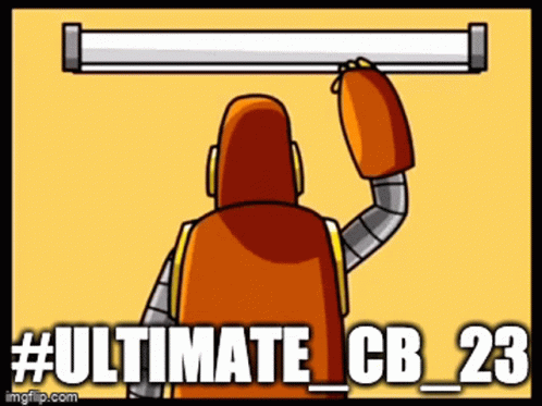 A cartoon robot stands before a periodic table of elements, with '#ULTIMATE_CB_23' displayed.