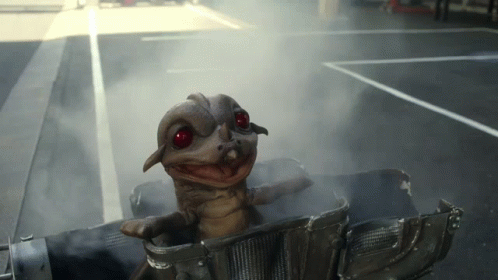 Baby Zandrias, a creature from Ultraman Taiga, sits in a metal box with glowing red eyes.