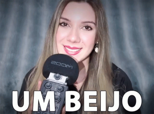 Monique Always blows a kiss into an ASMR microphone, with 'Um Beijo' text overlay.