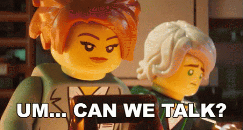 Lego Ninjago characters look concerned as the text 'Um... Can We Talk?' appears, setting an awkward tone.