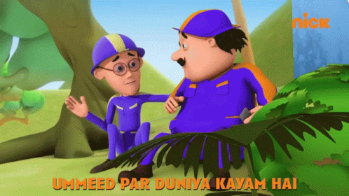 Motu and Patlu from Nickelodeon's cartoon series share a moment with the message "The world rests on hope."