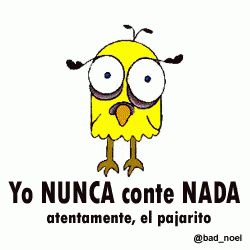 A cartoon chick with big eyes declares 'I NEVER told ANYTHING' in a humorous, meme-like fashion.