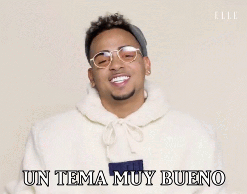 Ozuna, the artist, wearing glasses and a beanie, shares his thoughts, saying 'Un Tema Muy Bueno' (A Very Good Song).