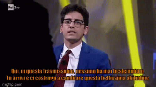 Valerio Lundini on Una Pezza Di Lundini, discussing blasphemy on the show, broadcast on Rai 2HD.