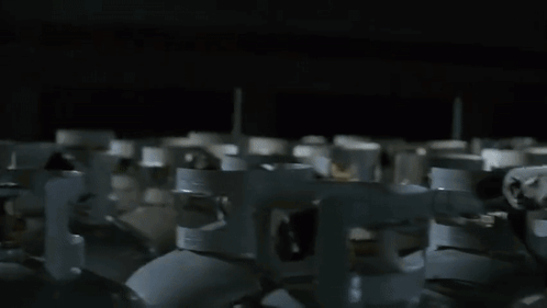 Numerous propane tanks are lined up in a dimly lit room, featured in 'Under The Dome', possibly involving Boomer Platt and Jeff Chase.
