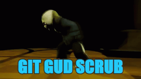 Sans from Undertale with the 'Git Gud Scrub' meme text displayed.