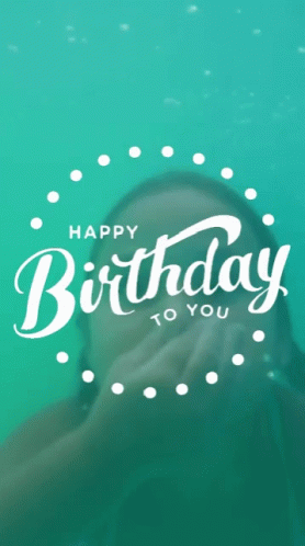 A person celebrates their birthday underwater, with 'Happy Birthday to You' text overlaid on the serene blue water.