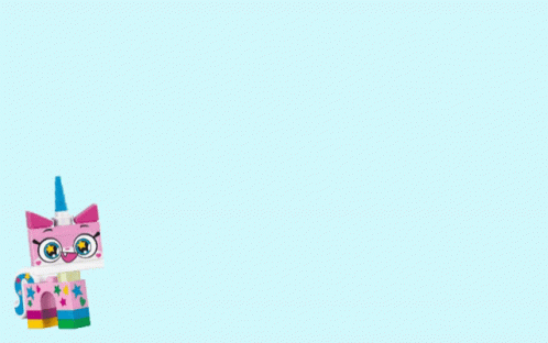 Unikitty Lego figure transforms through various fun and colorful designs, including a cake and cool sunglasses.