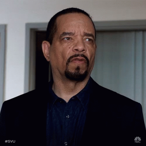 Ice T as Sergeant Odafin Tutuola looks unimpressed and disappointed on Law & Order: SVU, shaking his head.