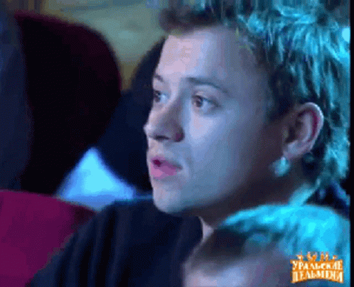 A man from Univer reacts with a wide smile and open mouth, possibly laughing or singing, under blue lighting.