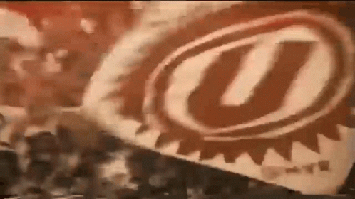 The flag of Universitario De Deportes Trinchera Norte, featuring a shark's teeth logo, waves dynamically.