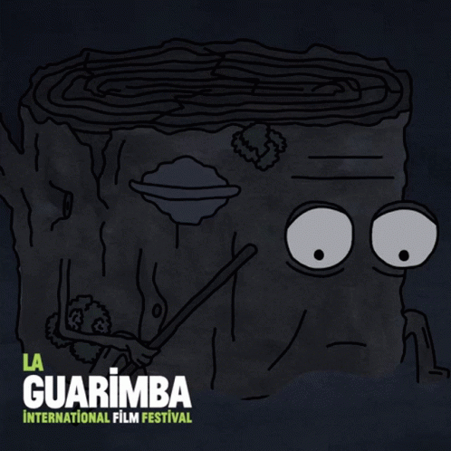 A cartoon tree stump with sad, unlucky expressions for La Guarimba International Film Festival.