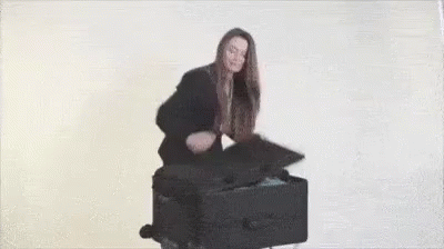 A woman demonstrates an innovative suitcase that transforms into a portable shelving unit for easy unpacking.